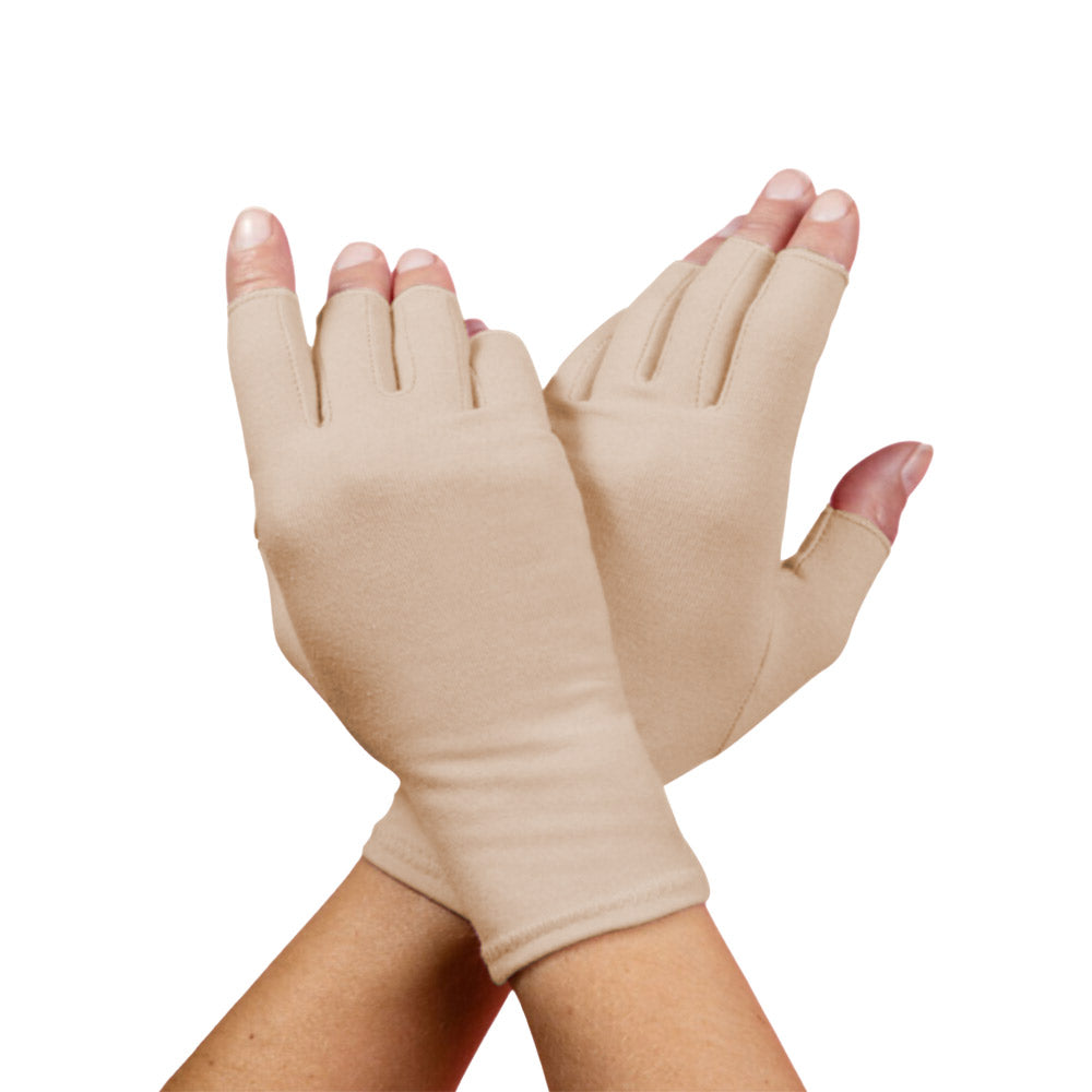 These soft cotton-stretch Compression Gloves give a gentle hug for your hand. They support sore joints and reduce pain and swelling, making them ideal for people living with chronic joint pain conditions like arthritis, trigger finger, neuropathy, EDS or RSI.